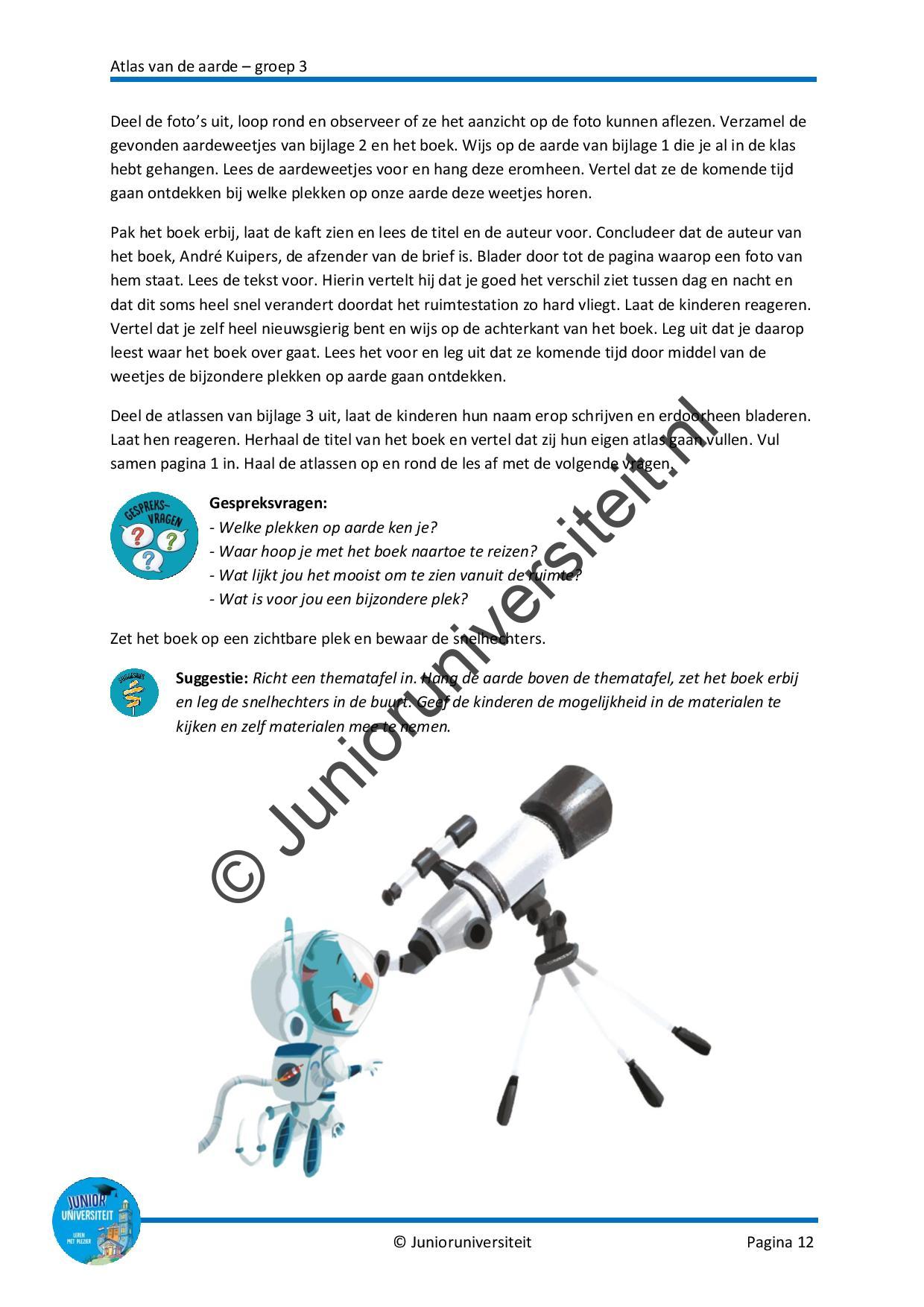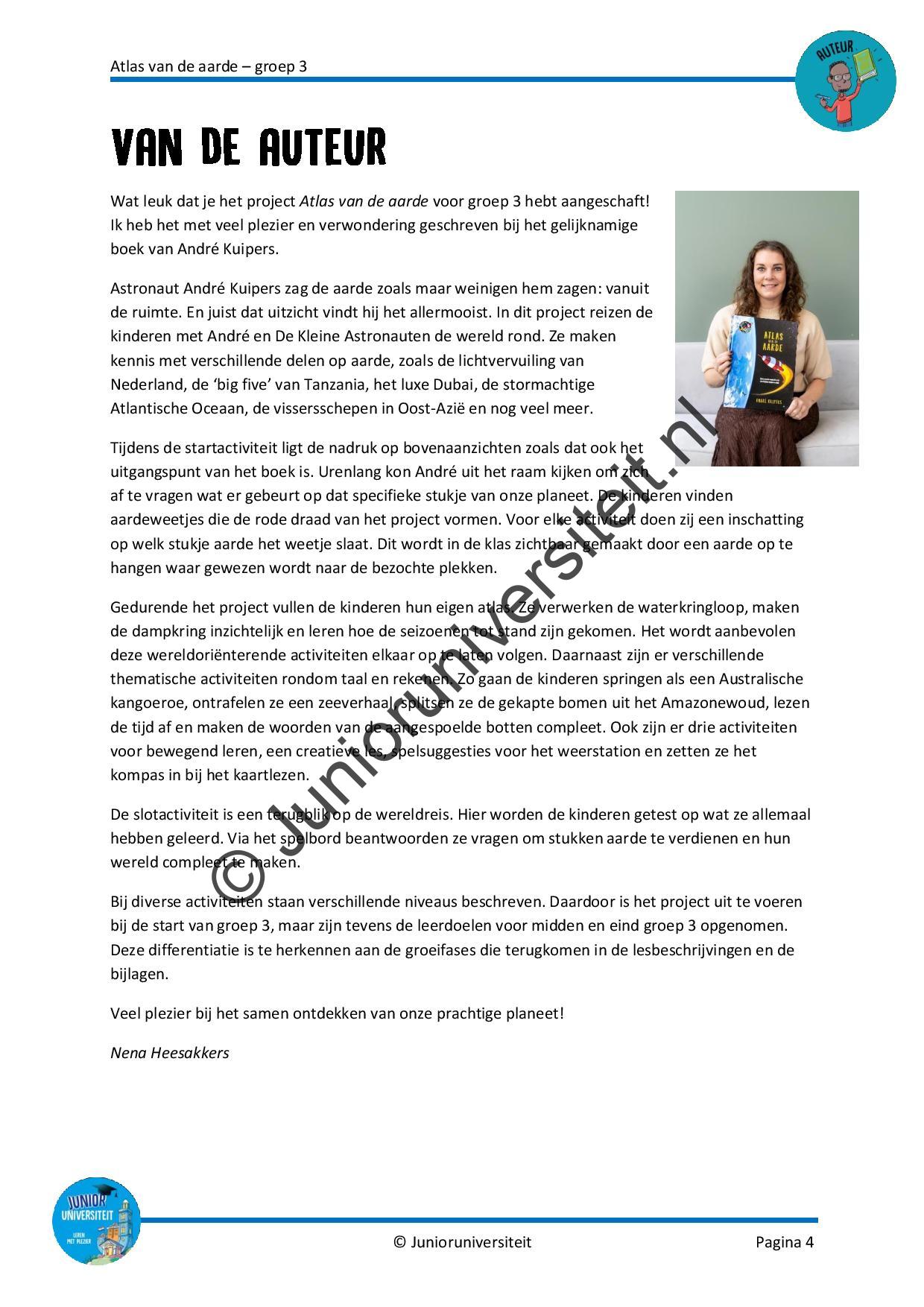 Wat leuk dat je het project Atlas van de aarde voor groep 3 hebt aangeschaft! Ik heb het met veel plezier en verwondering geschreven bij het gelijknamige boek van André Kuipers.