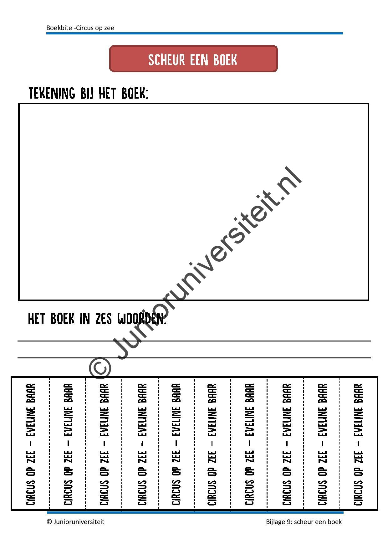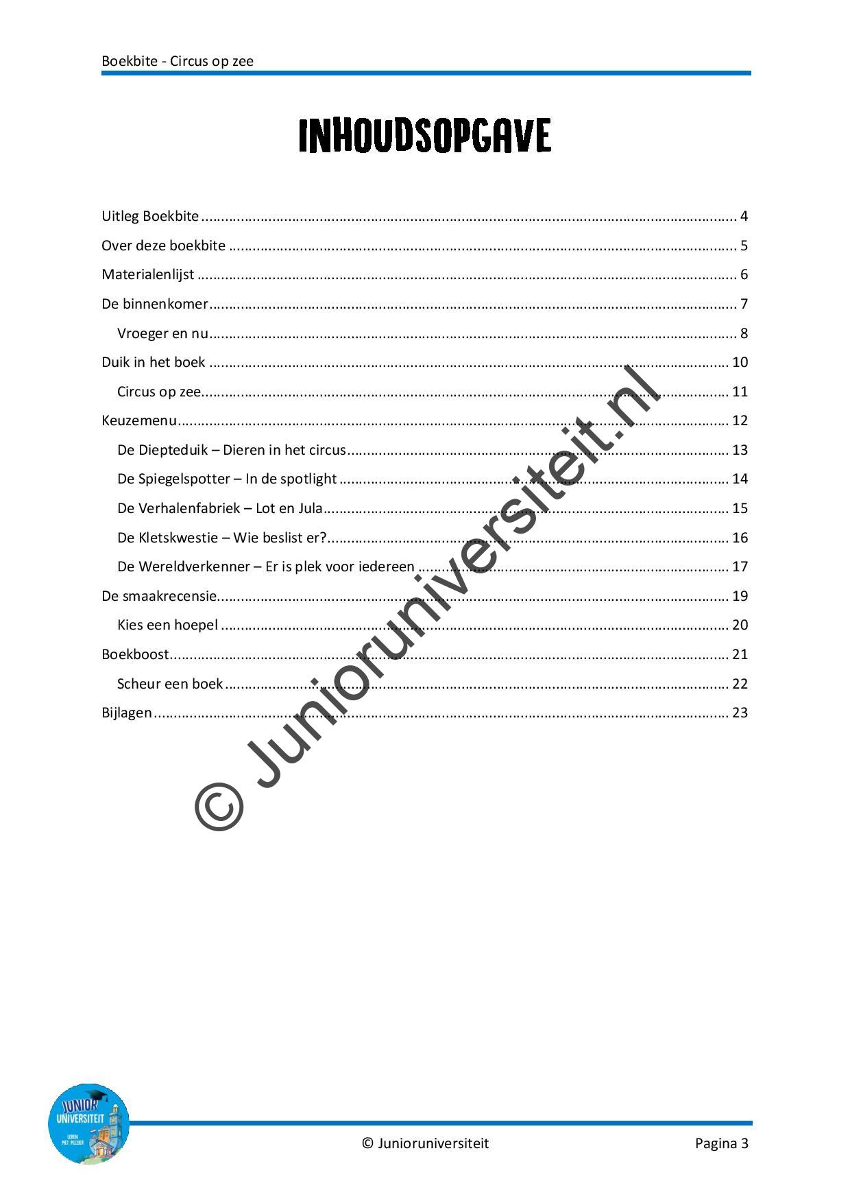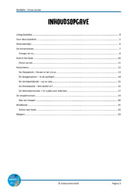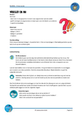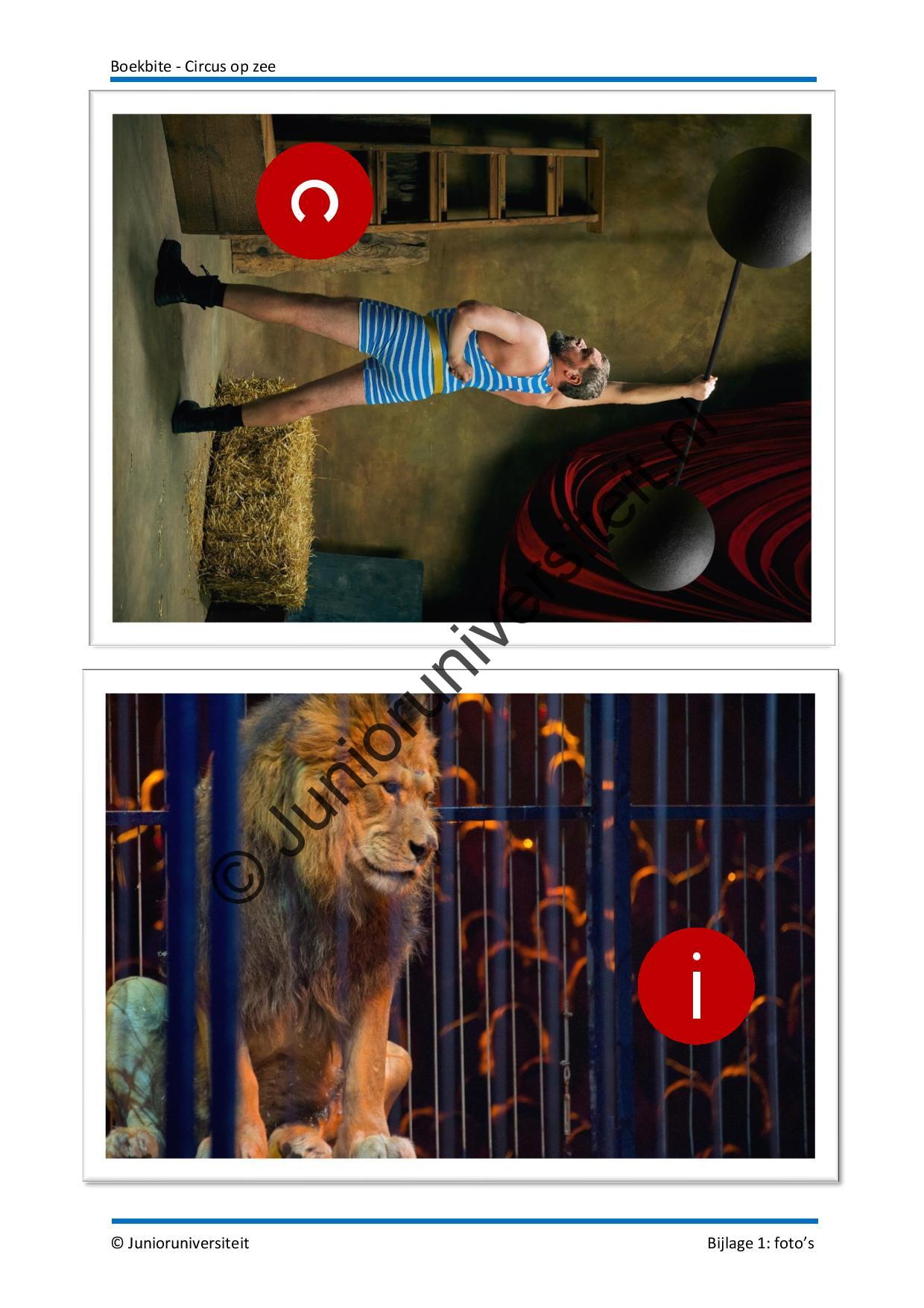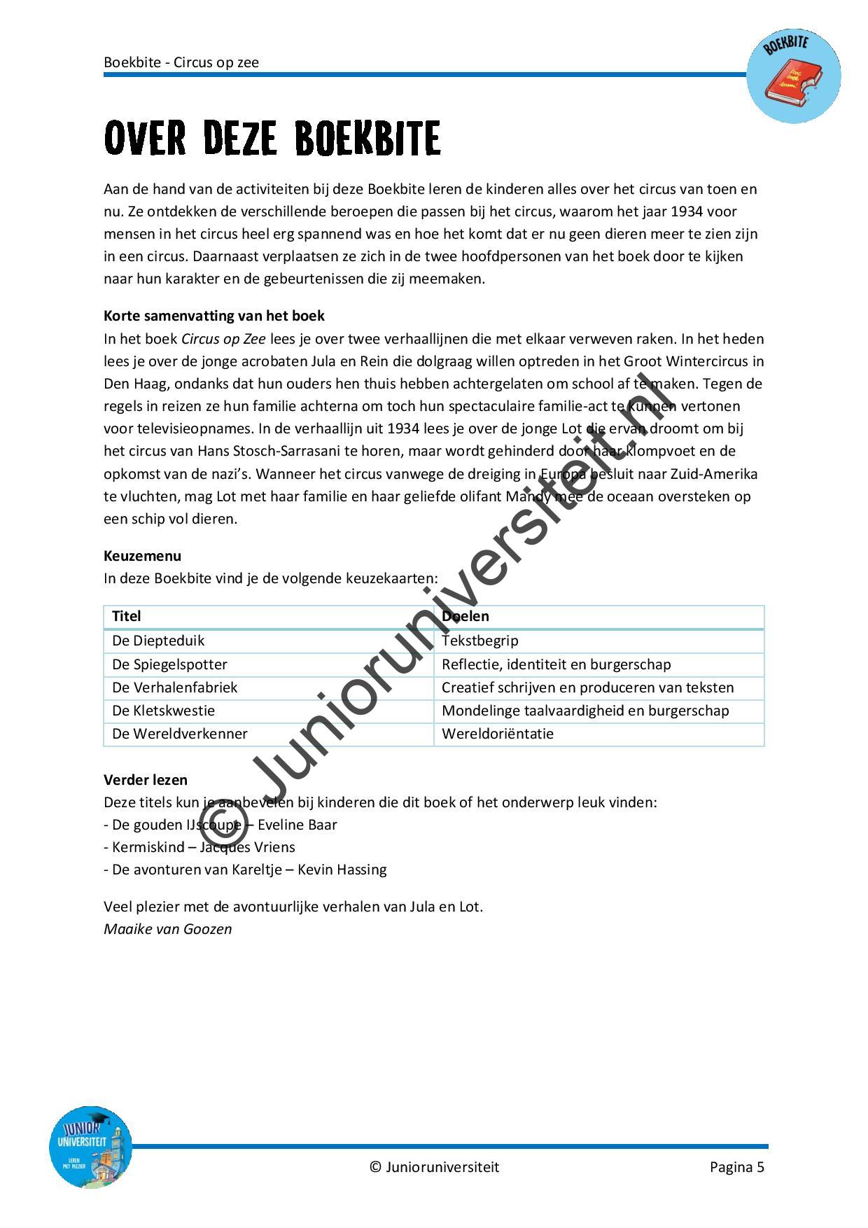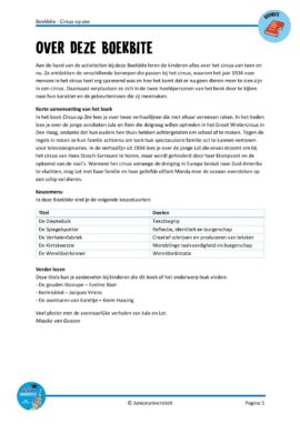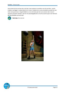 Aan de hand van de activiteiten bij deze Boekbite leren de kinderen alles over het circus van toen en nu. Ze ontdekken de verschillende beroepen die passen bij het circus, waarom het jaar 1934 voor mensen in het circus heel erg spannend was en hoe het komt dat er nu geen dieren meer te zien zijn in een circus. Daarnaast verplaatsen ze zich in de twee hoofdpersonen van het boek door te kijken naar hun karakter en de gebeurtenissen die zij meemaken. Deze Boekbite is geschreven bij het boek ‘Circus op zee’ van Eveline Baar.