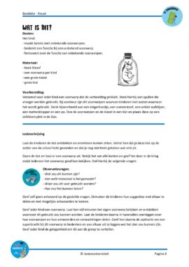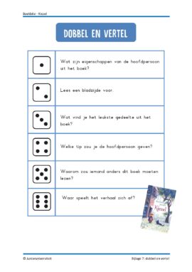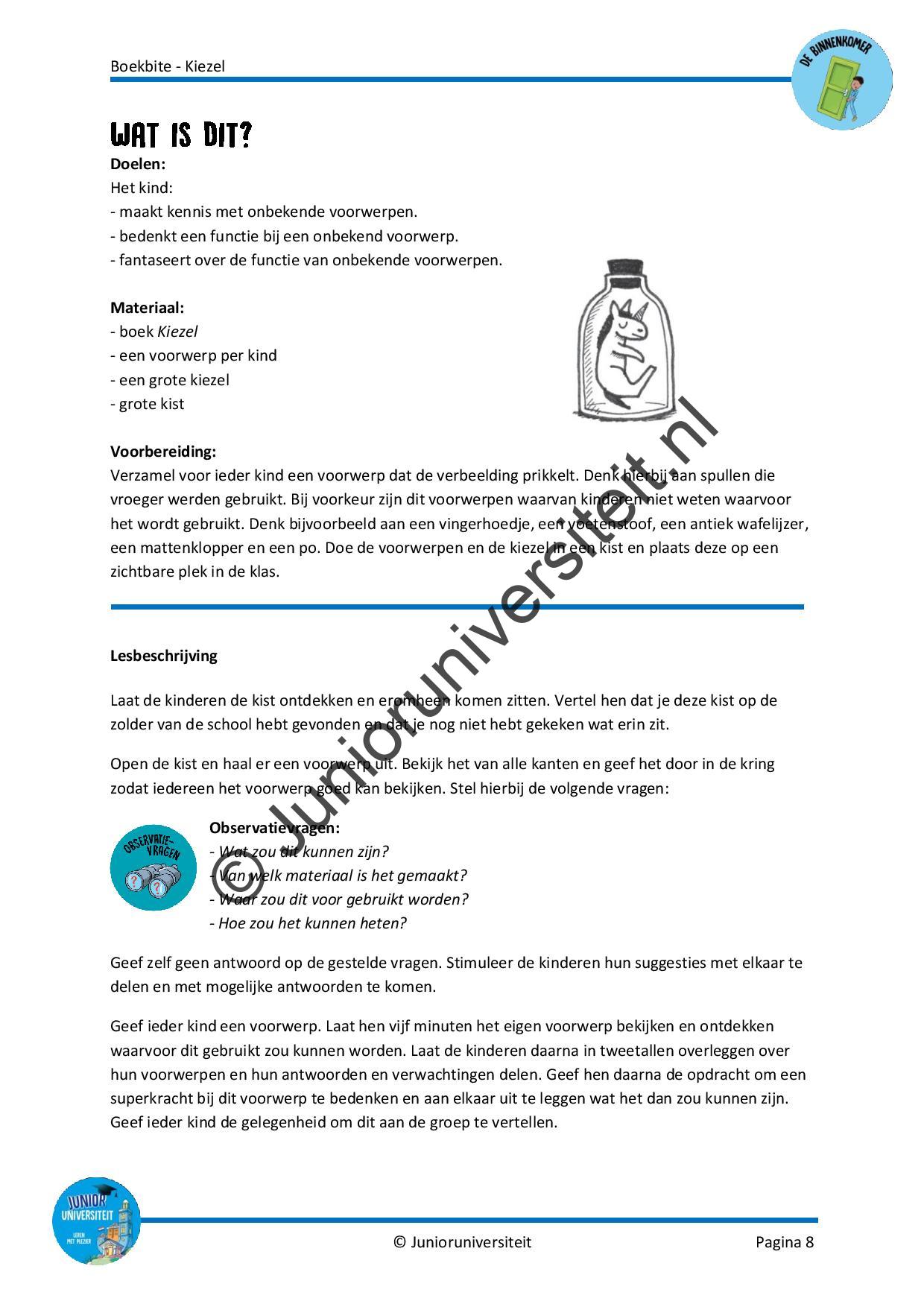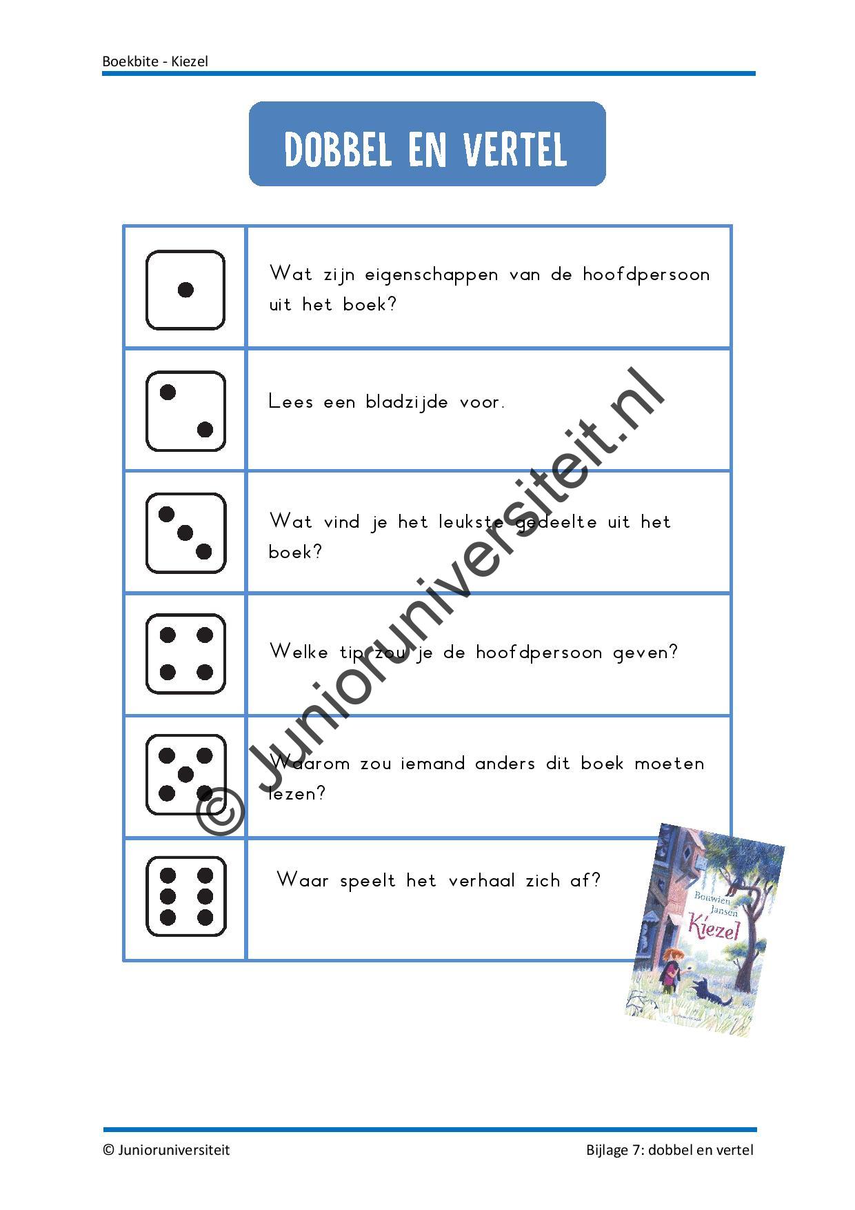 Aan de hand van de keuzekaarten bij deze Boekbite verdiepen de kinderen zich in de gebeurtenissen die Kat meemaakt. Ze gaan met elkaar in discussie over de manier waarop ouders voor kinderen zorgen, vergelijken hun woonplaats met de stad uit het boek, geven advies aan Kat en ontwerpen een nieuw personage en een gebouw. Deze Boekbite is geschreven bij het boek ‘Kiezel’ van Bouwien Jansen met illustraties van Sanne te Loo.