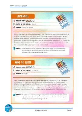 We hebben hierbij geprobeerd de gebruiksvriendelijkheid te vergroten door zo min mogelijk materialen en een minimaal aantal bijlagen te gebruiken. Alle bijlagen zijn bij meerdere boosters in te zetten. Het is aan te raden de bijlagen te printen en te lamineren.