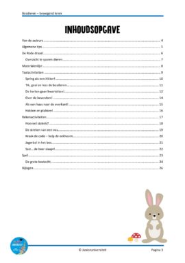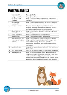 Dit bewegend leren spellenpakket voor groep 3 bevat 12 activiteiten rondom het thema bosdieren voor taal en rekenen, voor zowel binnen als buiten. Een goedgevuld pakket van 159 pagina’s met veel handige bijlagen.