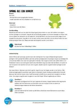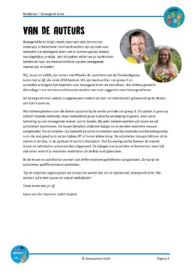 We hebben gekeken naar de doelen passend bij de eerste periode van groep 3. Dit pakket is geen op zichzelf staande methode, maar bedoeld om jouw instructie verdieping te geven, door extra herhaling op een bewegende manier aan te bieden. Bij ieder domein worden vijf lessen en vijf activiteiten beschreven. De lessen bevatten altijd een bijlage en er worden meerdere niveaus aangeboden. De activiteiten zijn bedoeld als korte momenten waarbij minimale voorbereiding nodig is en zijn ook goed in te zetten tijdens RT of in een kleine kring. De activiteiten zijn geschikt om uit te voeren in de klas, in de gymzaal of op het schoolplein. Ook bij weinig ruimte kunnen de meeste lessen en activiteiten prima worden uitgevoerd. De bijlagen kun je printen en lamineren, maar kijk ook zeker rond of je misschien materialen uit de klas kunt gebruiken.