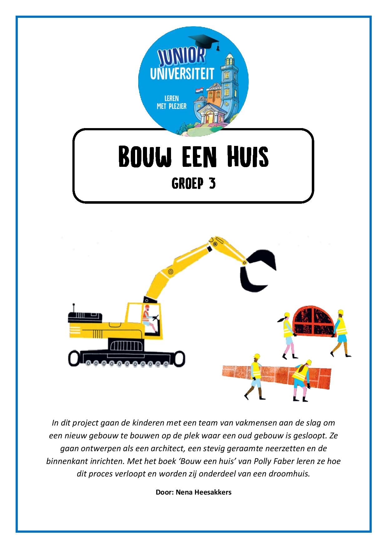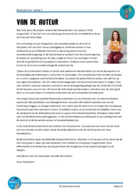 In dit project gaan de kinderen met een team van vakmensen aan de slag om een nieuw gebouw te bouwen op de plek waar een oud gebouw is gesloopt. Ze gaan ontwerpen als een architect, een stevig geraamte neerzetten en de binnenkant inrichten. Met dit project bij het boek ‘Bouw een huis’ van Polly Faber en illustraties van Klas Fahlén leren ze hoe dit proces verloopt en worden zij onderdeel van een droomhuis.