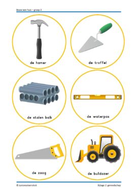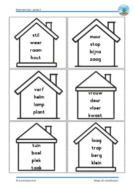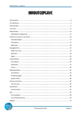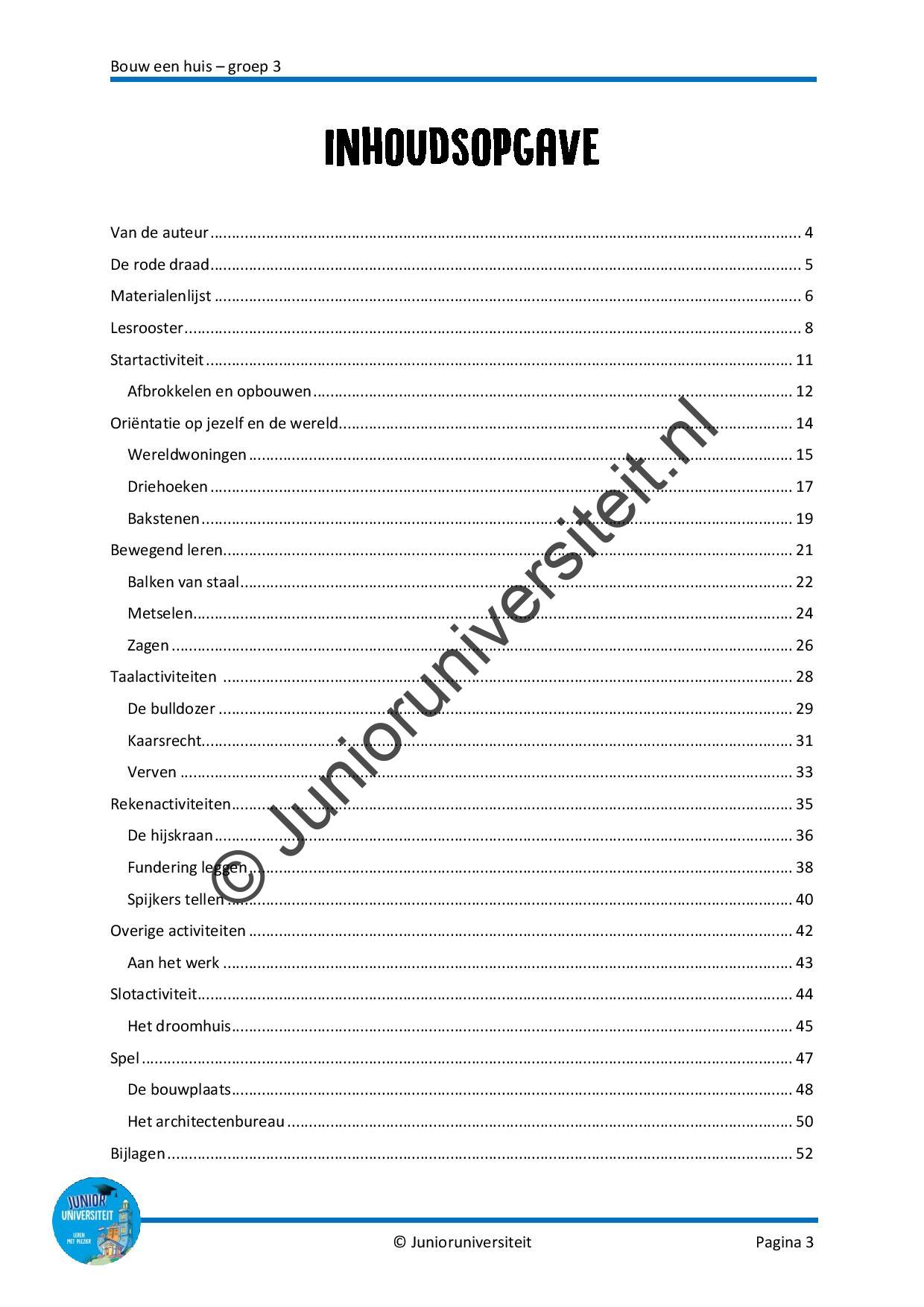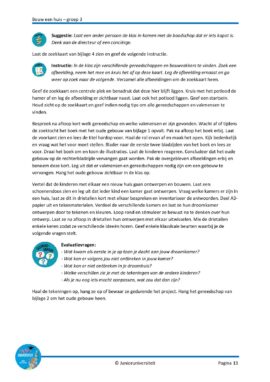 Het project bevat drie wereldoriënterende activiteiten en verschillende taal- en rekenactiviteiten, waaronder drie activiteiten voor bewegend leren. Zo vullen de kinderen aantallen aan om de fundering te leggen, ze brengen bakstenen met cijfers naar de juiste muur en zorgen dat het gebouw kaarsrecht staat door woorden te lezen. Ze bekijken huizen uit verschillende werelddelen, leren over de stevigheid van de driehoeksconstructie en passen het metselverband toe. Stimuleer coöperatief spel met de beschreven spelsuggesties. In het architectenbureau ontwerpen ze een plattegrond voor de klant en in de bouwhoek passen ze bouwtechnieken toe.
