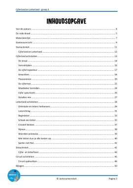Voor je ligt het project Cijferland en Letterland, gericht op de eerste periode in groep 3 waarin het ontdekken van de cijfers en letters centraal staat. In het boek Cijferland en Letterland maken de kinderen kennis met twee totaal verschillende landen. In Cijferland is alles gestructureerd, orde en regelmaat zijn daar belangrijk. In Letterland wonen de letters gezellig bij elkaar en verloopt de dag wat losser. Tijdens de startactiviteit maak je met de klas een start aan een eigen Cijferland en Letterland. Gedurende het project breid je deze landen steeds verder uit. Na elke rekenactiviteit voeg je materiaal en een spelvorm aan Cijferland toe. Na elke leesactiviteit gebeurt dit bij Letterland. Zo worden Cijferland en Letterland steeds completer en blijft het spelen in deze landen aantrekkelijk gedurende het hele project.