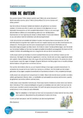 Hoe groeien bomen? Waar dienen wortels voor? Wat is de rol van bloemen? Welke bijzondere bomen zijn er? Wat is fotosynthese? En kunnen bomen met elkaar praten? Aan het eind van dit project hebben de kinderen alle geheimen van bomen ontdekt. Ze komen van alles te weten over bomen in het algemeen en over bijzondere boomsoorten uit Het complete bomenboek. Ik ben er van overtuigd dat de kinderen telkens vol verwondering zullen zijn over de bijzondere boomsoorten en hoe ingenieus de natuur in elkaar steekt. Ik wens de kinderen en jou veel plezier met het ontdekken van alle boomgeheimen!