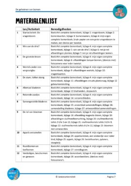 In dit project zijn uiteraard veel natuurlessen te vinden. Maar in de meeste lessen worden meerdere vakken geïntegreerd. Diverse reken- en taaldoelen zijn gekoppeld aan actieve werkvormen, waarbij de geheimen van bomen telkens centraal staan.