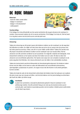 Bij diverse activiteiten staan verschillende niveaus beschreven. Deze niveaus worden weergegeven op de bijlagen. Kies vooraf de juiste bijlage passend bij het niveau van jouw groep of individuele kinderen. Het is raadzaam voor aanvang van dit project de rode draad en materialenlijst goed door te nemen en de materialen te verzamelen. Print en lamineer eventueel de bijlagen die je vaker gaat gebruiken. Veel plezier met het vinden van de nieuwe billen voor de ridder!