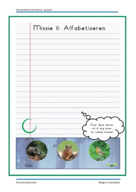 Het project geeft veel ideeën aan: Van wereldorientatie nav dit boek, tot spellingsopdrachten, rekenopdrachten, maar ook (en daar waren wij blij mee) sociaal emotionele opdrachten voor de groepsbinding. Allemaal passend binnen het bos thema.