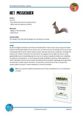 Met dit project laat je de kinderen de waarde van het bos inzien. De kinderen gaan op avontuur met De Bosbende. Zij vragen om hulp bij hun missie om de bossen te redden. Elke activiteit start met een missiebrief van de Bosbende. In hun eigen missieboek verwerken de kinderen bij elke activiteit hun opdracht. Het missieboek is aan het eind van dit project gevuld met kennis en ervaring van het kind. De opgedane kennis en ervaring delen ze tot slot in een door hen zelf ontworpen tentoonstelling over de geheimen van het wilde woud.