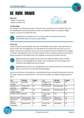 De rode draad van het project leert de kinderen over de verschillende soorten woningen die er zijn. Het neemt hen mee en laat hen inzien waar hun klasgenoten wonen. De wereldoriëntatie lessen bieden de ondersteuning die zij nodig hebben om het thema beter te begrijpen. Ze kijken naar de ontwikkeling van huizen door de tijd heen, bekijken de beroepen die helpen bij het bouwen van een huis en maken een tripje langs verschillende woningen in de wereld.