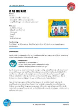 Heel leuk en gevarieerd project. De kinderen waren heel betrokken bij de rode draad van het verhaal: welk type huis gaat er deze keer verschijnen? Vooral de les over de huizen van vroeger vonden de kinderen interessant. Dit project is goed in te zetten in de eerste helft van groep 3.