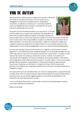 In dit creatieve project word je meegenomen in de wereld van de moderne kunst. De kinderen leren wat kunst is, ontdekken dat zij zelf kunstenaar zijn, houden een portfolio bij en vullen gezamenlijk een museum die feestelijk geopend wordt. Het project is geschreven bij het boek ‘Is dàt kunst?’ van Thijs Demeulemeester en Aart-Jan Venema.
