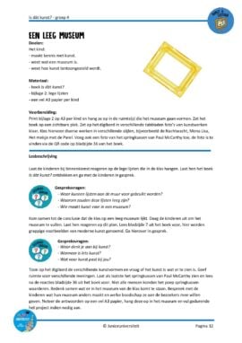 Een leuk opgebouwd project dat start in een leeg museum. Wijzelf hebben de lijsten uit het project gebruikt en lijsten van purschuim gemaakt. Kinderen staan meteen aan en hebben zin om aan de slag te gaan in de hoek ‘het atelier’ om kunst te maken voor het museum. Door dit project te volgen komen de kinderen in aanraking met veel verschillende soorten kunst: oude kunst tot moderne kunst. En wat valt er dan onder moderne kunst? Dit hebben wij verzameld op onze themamuur. Waar de kinderen vaak op terug hebben gekeken.