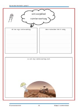 Een leuke rode draad vormen de raadsels waar de kinderen tijdens het project een antwoord op moeten zien te vinden. Ze vullen tijdens het werken met de activiteiten een heus ruimtereisboek dat aan het eind van het project een mooie samenvatting is van alles wat ze hebben geleerd.