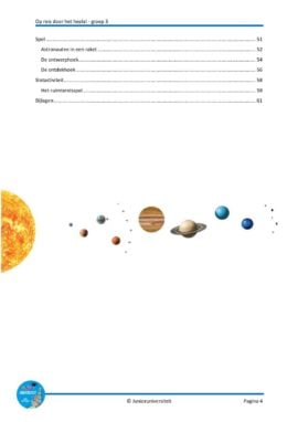 Met dit afwisselende project voor groep 3, geschreven bij de boeken ‘Reis naar de maan’ en ‘Geheimen van het heelal’ van Mack van Gageldonk, gaan de kinderen als echte astronauten op ontdekkingstocht door de ruimte. Hun eigen verwondering staat hierbij centraal. Ze gaan zoveel mogelijk zelf op onderzoek uit. Dankzij de uitdagende activiteiten en spelhoeken komt dit thema echt tot leven in jouw groep!