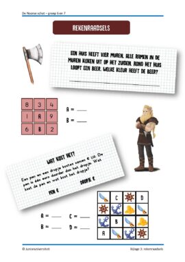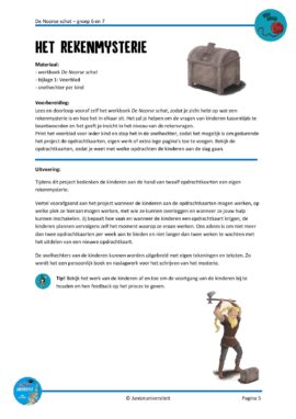 Dit project is geschreven bij het werkboek ‘Rekenmysterie 1 – de Noorse schat’ van Sarah Brusell en Renate Potter. In dit project werken de kinderen toe naar een eigen rekenmysterie: een spannend en grappig verhaal vol rekenraadsels. Ze denken na over de verhaallijn, de personages, de omgeving en verzinnen rekenraadsels die het verhaal ondersteunen.