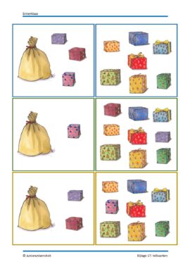 De favoriete activiteiten waren het pakhuis, waar de kinderen pakjes sorteren en zo oefenen met het ordenen van getallen. Een andere hit was de activiteit ‘zakken vullen’. Ik combineerde het rekenen via het tiental en het splitsen met elkaar. Met de kaarten met de pakjes was dit ideaal! De les had veel meer betekenis en de kinderen hadden de grootste lol tijdens het splitsen met pakjes.