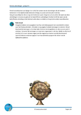 In het bijgevoegde lesrooster is de aanbevolen lesvolgorde beschreven. Het is aan te raden om deze volgorde aan te houden. Op deze manier voer je de activiteiten uit in de volgorde van het boek en werk je eerst aan de activiteiten over de prehistorie en de grote uitvinders, en daarna aan activiteiten rondom voertuigen. Tenslotte ga je aan de slag met de uitvindingen die ons dagelijks leven hebben beïnvloed. Bij elk onderdeel hoort een wereldoriëntatie les en een bewegend leren activiteit voor de hele groep. Daarnaast hoort er een spelsuggestie, taal-, reken-, en extra activiteit bij elk onderwerp, die naar eigen inzicht in te zetten zijn: tijdens hoekenwerk, de inloop, klassikaal of als onderdeel van een circuit.