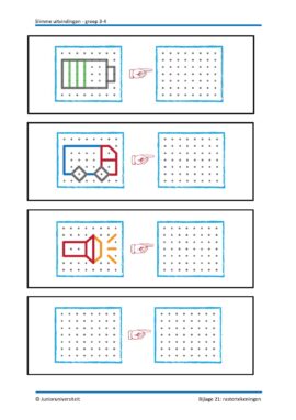 Met dit project beschik je over zeer gevarieerde opdrachten en verschillende uitdagende spelsuggesties. Voor veel activiteiten staan meerdere niveaus beschreven. Ook in de bijlagen zijn de verschillende niveaus duidelijk terug te vinden. Groeifase 1 is gemarkeerd met een gele rand; dit niveau is het meest passend voor de eerste helft van groep 3. Groeifase 2 heeft een zwarte rand; dit niveau past het best bij de tweede helft van groep 3. Groeifase 3 is te herkennen aan een rode rand en is het meest geschikt voor groep 4. Bij enkele activiteiten zijn ook ‘blanco’ bijlagen toegevoegd met een groene rand, voor extra maatwerk. Stem de inhoud van deze bijlagen af op het niveau van jouw groep.