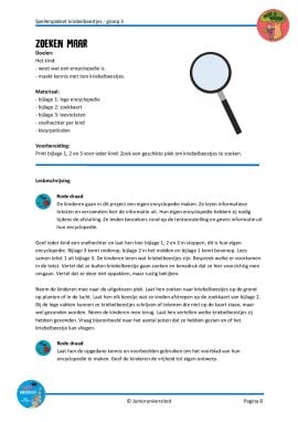 Gedurende dit project gaan de kinderen aan de slag met het maken van hun eigen encyclopedie. Dit doen zij aan de hand van leesteksten. Elke les beginnen ze, samen met de leerkracht, met het lezen van een leestekst. Deze tekst vormt de leidraad voor de bladzijde die ze in hun encyclopedie gaan invullen. Na het lezen verzamelen de kinderen informatie uit de leestekst en noteren deze in hun encyclopedie. Informatie die ze bijleren tijdens het spelen van het bijbehorende spel, kunnen ze ook verwerken.