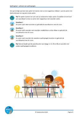 Maak kennis met de kinderen uit Spellingstad en beleef allerlei avonturen. Dit pakket voor groep 3, 4 en 5, van maar liefst 243 pagina’s, bevat 12 activiteiten waarbij kinderen op speelse wijze en op verschillende niveaus aan het oefenen van de spellingregels werken. Daarnaast werken ze volop aan hun executieve vaardigheden.