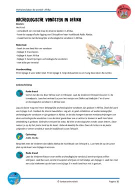 In dit project voor groep 7 en 8 wordt de topografie van werelddeel Afrika in een betekenisvolle context en in samenhang met andere vakken aangeboden. Dit project is geschreven bij het boek ‘In een land hier ver vandaan’, geschreven door Arend van Dam en geïllustreerd door Alex de Wolf. De verhalen uit dit boek vormen de rode draad in het project.