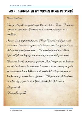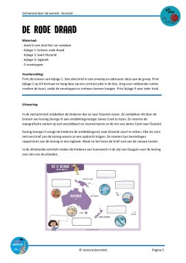 De verhalen uit het boek In een land hier ver vandaan vormen de rode draad in dit project. In elk verhaal staat een bijzondere plek, persoon of verhaal uit Oceanië centraal. In de startactiviteit ontdekken de kinderen dat ze naar Oceanië reizen, door de brieven van koning George III voor ontdekkingsreiziger James Cook te lezen. Elke les start met een brief van koning George III waarin hij de kinderen een opdracht geeft. Ze moeten op ontdekkingsreis door Oceanië en hun bevindingen rapporteren aan de koning.