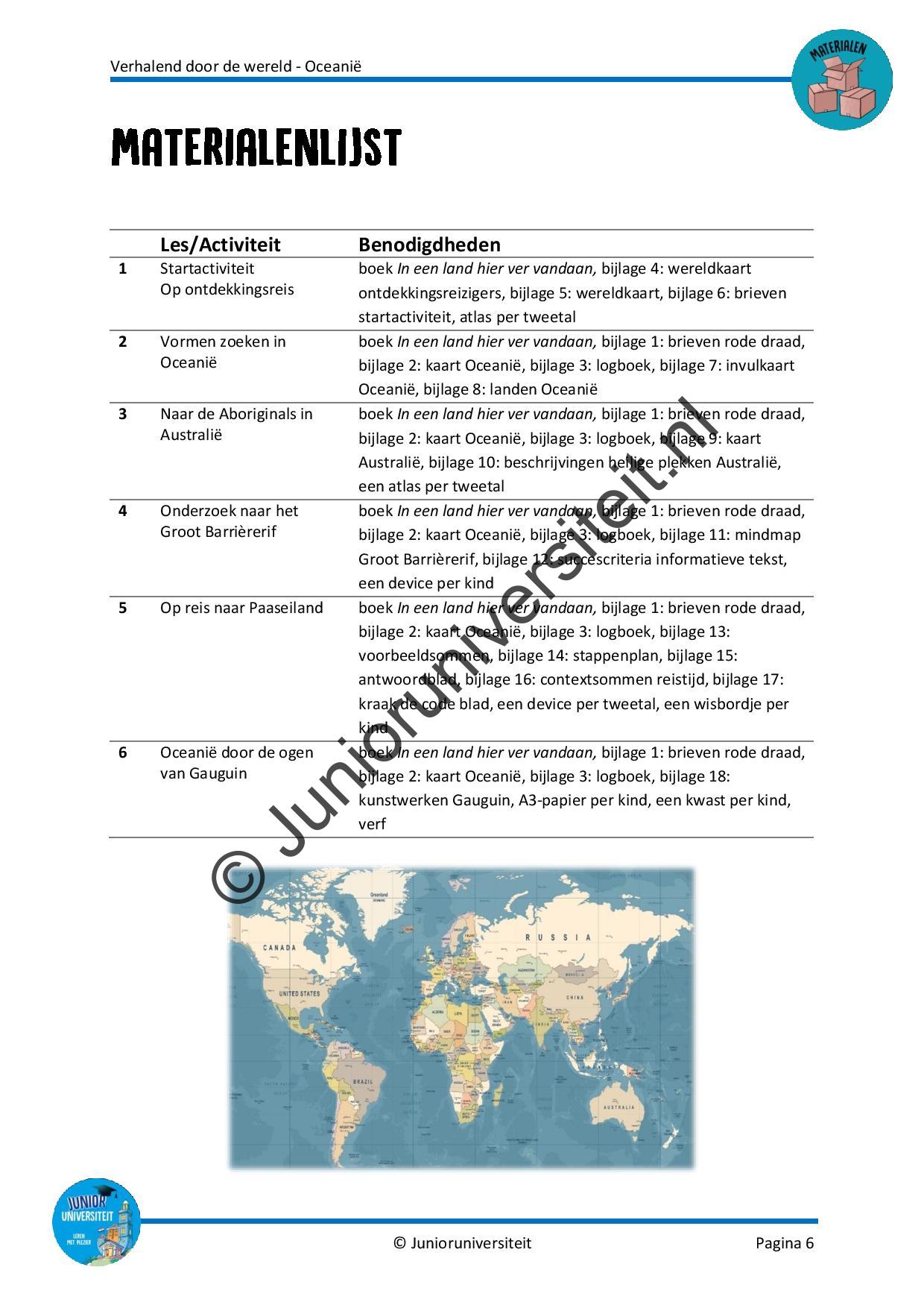 Je kunt de volgorde van de lessen zelf bepalen, met uitzondering van de startactiviteit en de slotactiviteit. Ik wens je heel veel plezier met deze avontuurlijke reis door Oceanië!
