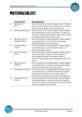 Je kunt de volgorde van de lessen zelf bepalen, met uitzondering van de startactiviteit en de slotactiviteit. Ik wens je heel veel plezier met deze avontuurlijke reis door Zuid-Amerika!