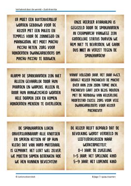Elke les start met een raadsel om de nieuwsgierigheid van de kinderen te wekken. Aan het eind van elke les noteren de kinderen op een researchblad waar zij nieuwsgierig naar zijn. Dit researchblad helpt hen om bij de slotactiviteit te bepalen over welk land zij een verhaal gaan schrijven. Mede door dit researchblad wordt de topografie van Zuid-Amerika in een betekenisvolle context aangeboden.