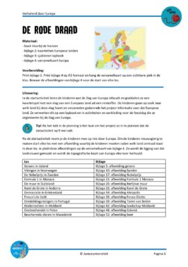In de startactiviteit maken de kinderen kennis met de Dag van Europa, een feestdag om stil te staan bij het feit dat de Europese Unie ooit is opgericht om de vrede in Europa te bewaren en om alle burgers in de EU een goede levensstandaard te kunnen garanderen. Gedurende het project worden materialen gemaakt en activiteiten gedaan die bijdragen aan de slotactiviteit, het zelf organiseren van De Dag van Europa in de klas.