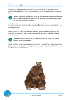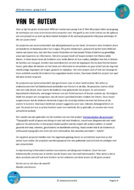 De projecten van Junioruniversiteit zijn altijd gebaseerd op een boek. De boeken laten kinderen doen verwonderen en beantwoorden hun vragen. Dit gratis miniproject, gebaseerd op het boek Wild van mama van Jessie Jans, laat zien hoe mooie illustraties en interessant feitjes kinderen op geweldige wijze kan inspireren en informeren. Het mini-project biedt vijf lessen rondom het thema wilde dieren. In deze lessen leren de kinderen over wilde dieren en hun ouders, bekijken hoe het er binnen de families aan toe gaat, breiden hun woordenschat uit met de begrippen die bij deze familierelaties horen, gebruiken de teksten uit het boek om informatie te verzamelen en gaan actief aan de slag met meetkundige begrippen als lengte, gewicht en tijdsduur. Het mini-project sluit af met een bewegend leren activiteit waarbij de kinderen hun opgedane kennis testen. Daarnaast biedt het project een spel dat deze kennis vergroot.